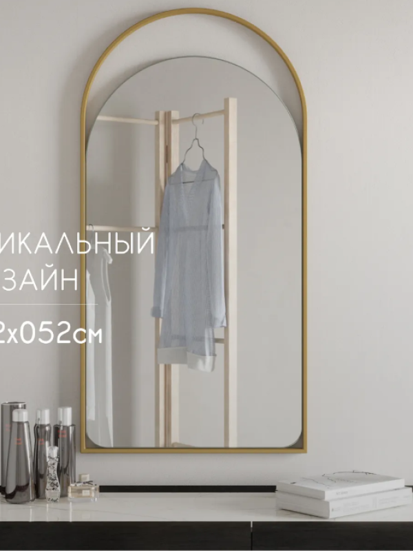 Дизайнерское арочное настенное зеркало Glass Memory Artful в металлической раме золотого цвета в Лениногорске